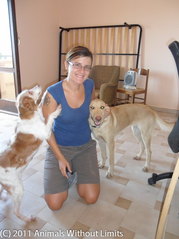 I think it was one year ago we went out on a mission to Rossella’s shelter with food and some medicine. We were many volunteers, and it was a warm lovely day. We washed some dogs, brushed and walked as many shelter dogs as we could. In one small kind of dark box laid a very sick dog, just skin and bones. He looked very old, black and white short hair with gray around his mouth. His tail thumped, it never wagged, when he saw you in your eyes, the tail went ”thump, thump, thump”